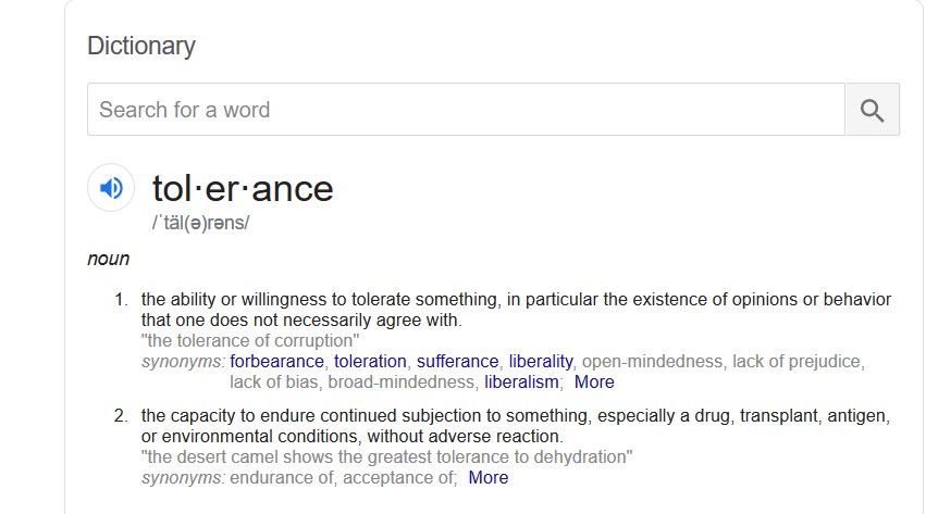 And, here’s what appears first when I type “tolerance” into the Google search engine: